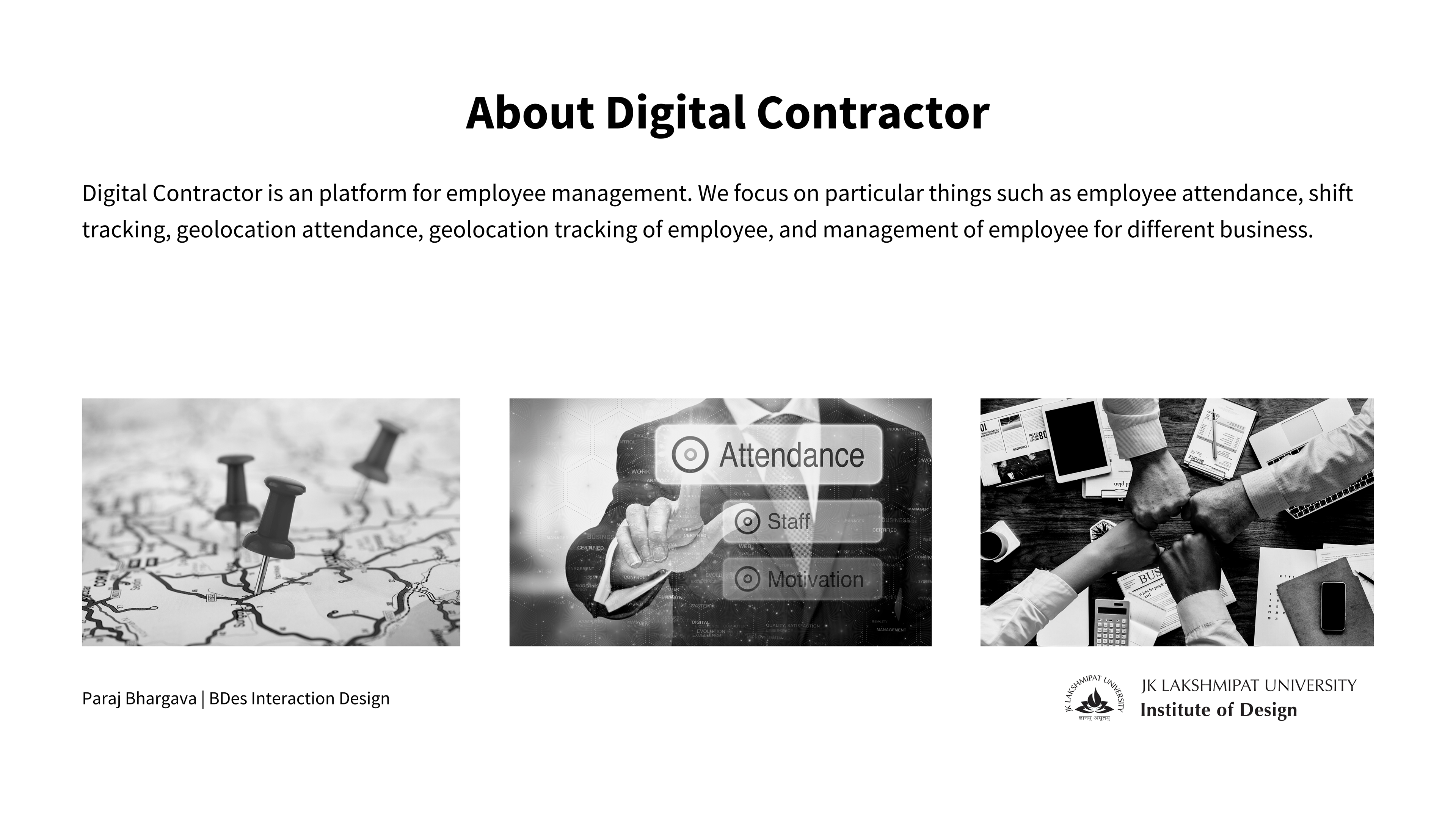 Digital Contractor is an platform for employee management. We focus on particular things such as employee attendance, shift tracking, geolocation attendance, geolocation tracking of employee, and management of employee for different business.